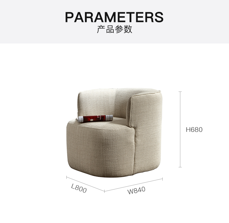 | 商品名称 | 菲尼其意式極简客間布芸ソファー椅子のシングル設計者の囲い椅子の白い客間レジャー椅子の意味式は800*840*680 mmです。 |