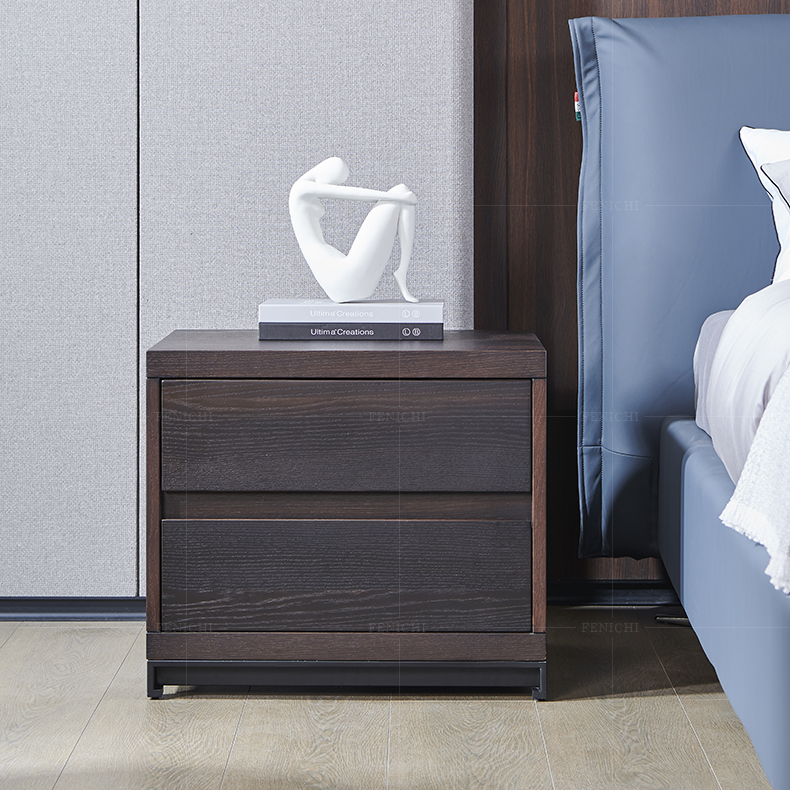 フィニの意味式の極簡単なタバコの薫製のクヌギのベッドの頭台の本当の木の引き出し式の寝室の収納棚の現代の簡単な四角形のベッドの辺の戸棚の褐色のイタリア式はきわめて簡単です。