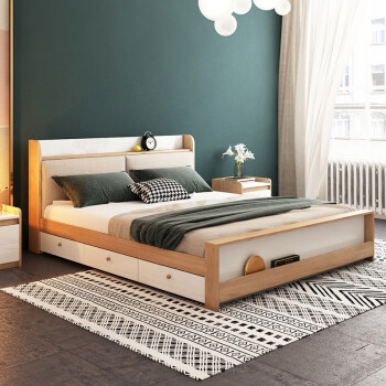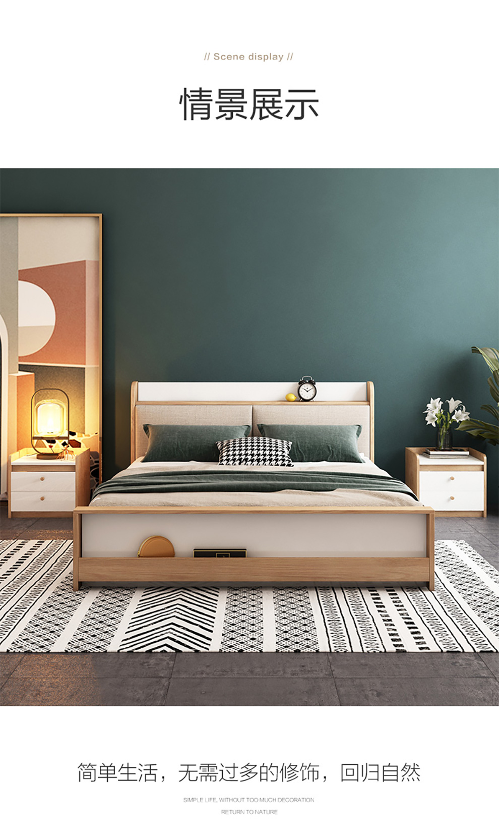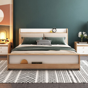 華納斯ベッドは現代の板式ベッドの高箱の保管物を簡単に予約して、ベッドの部屋の狭い部屋型寝室の北欧の2人の結婚シーツの高箱のベッド+マットレス*1(B 1107 M)+MLDマットレス1800 mm*2000 mm
