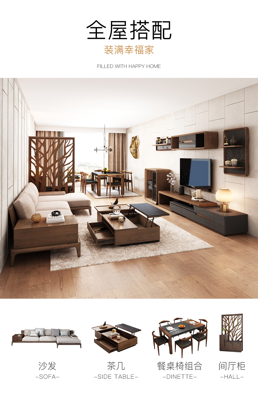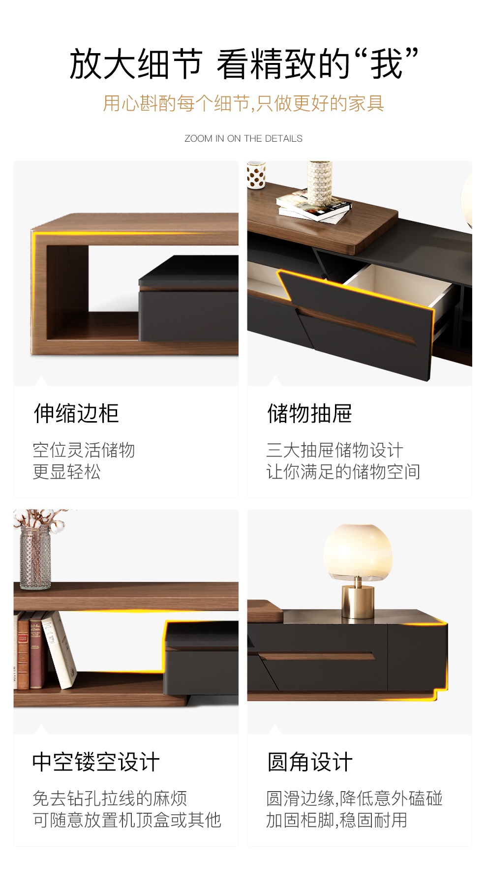 華納斯テレビキャビネット伸縮テレビキャビネット茶何セット北欧現代家具木皮色(胡桃木色)単一のテレビキャビネット