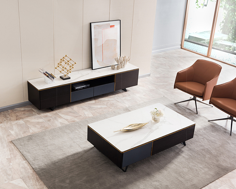 意味式の極簡単な岩板茶のいくつかのテレビの箱はステンレスの長方形の1.4メートルの固体の木の貯蔵物を組み合わせて軽奢なお茶のテーブルのテレビの箱【2メートル】Trapaniイタリア式を極めて簡単です。