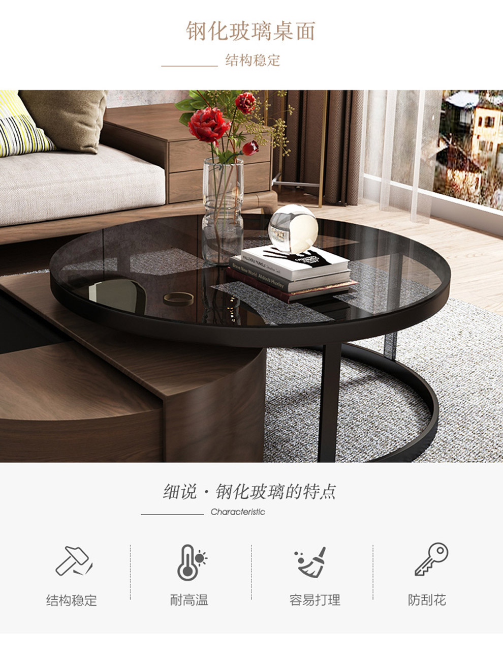 | 商品名称 | 華納斯茶何北欧円形の茶の何のテレビの箱の組合せの簡単な現代の鋼化のガラス |
