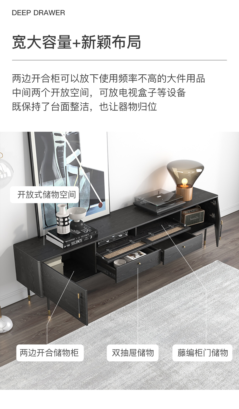 華納斯テレビのキャビネットは軽くて贅沢なテレビのキャビネットが簡単に家庭用の木製のキャビネットの客間の小さい戸形の黒色の復古の物置の戸棚の1.8 Mの単一のテレビの箱の煙はぼうっとしている色をいぶします。