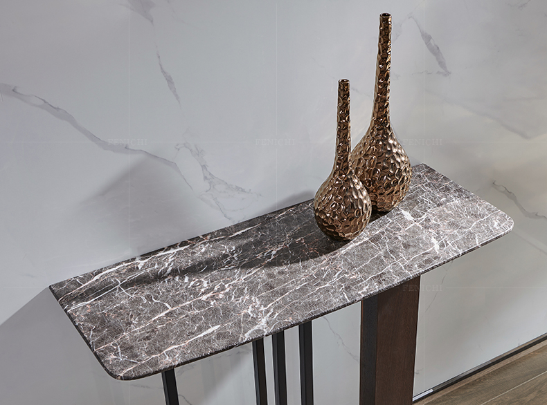 イタリア式の極めて簡単な玄関台の後で近代的な簡単な客間は戸端の景台の廊下の壁のへりのテーブルのデザイナーを予約してテーブルの意味を装飾します。
