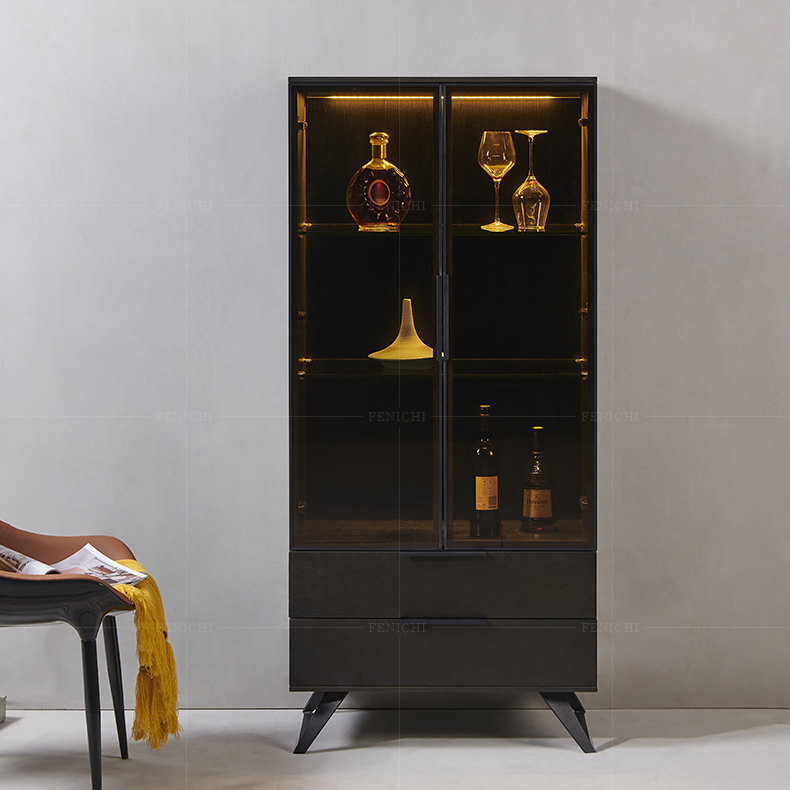 イタリアの极简居酒屋のワイン棚にはLEDライトが付いています。近代的で简単で、高级レストランのガラスロッカーがカスタマイズされています。
