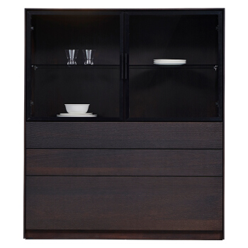 フィニの意味はきわめて簡単なガラスのキャビネットは壁の高い金によって床につく式のお茶の食器棚に引き出しを持ってきます。