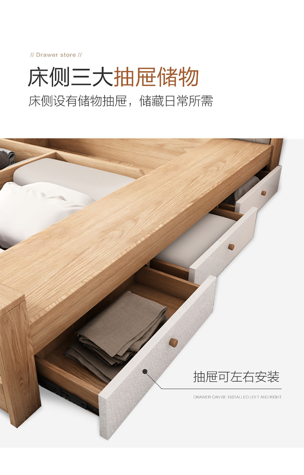 華納斯ベッドは現代の板式ベッドの高箱の保管物を簡単に予約して、ベッドの部屋の狭い部屋型寝室の北欧の2人の結婚シーツの高箱のベッド+マットレス*1(B 1107 M)+MLDマットレス1800 mm*2000 mm