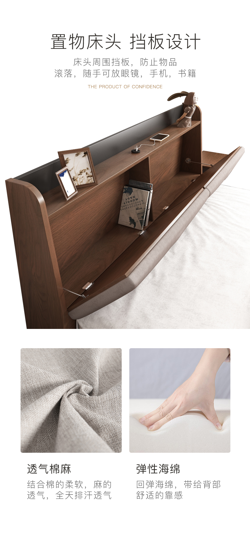 華納斯ベッドのダブルベッド1.8メートルの結婚ベッドベッドのベッドルームの棚式ベッドの1.5メートルのシングルベッドのコーヒー色