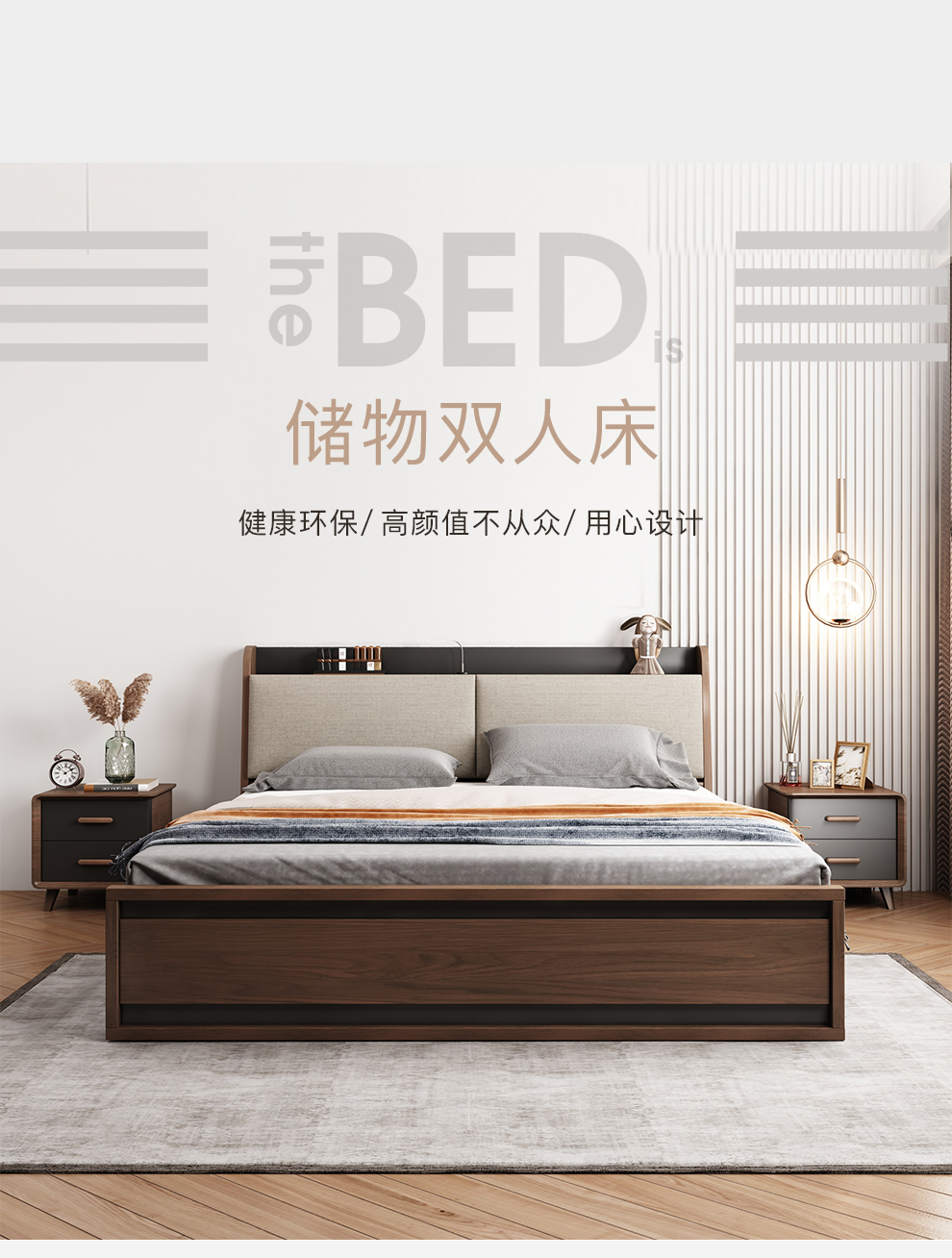 商品名華納斯ベッドダブルベッド1.8 m婚ベッドベッドベッドベッドベッドルームの高箱収納ベッドの板式ベッド1.5 mシングルベッドのコーヒー色(B 20002 Hアップグレードモデル)1.8 mシングルベッド+ドリームラダマットレス