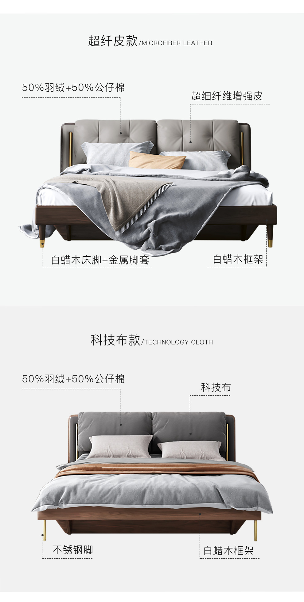 華納斯ベッド北欧の軽奢な実木ベッドの現代簡単な家庭用1.8メートルダブルベッドの多機能1.5 m高箱の保管物の大きいベッドの普通のタイプ-シャンパンの灰色の超繊皮1800*2000-高箱のタイプ