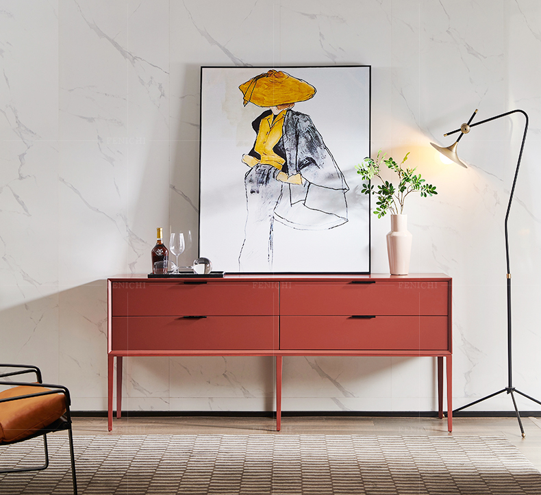 イタリア式のきわめて簡単な食事の辺の戸棚の赤色は漆の1.8メートルの金属の足の北欧のins風格のネットをあぶります赤い壁によって物の箱の意味式を蓄えますきわめて簡単です【食事の辺の戸棚】